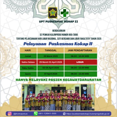 Jadwal Pelayanan Selama Cuti Bersama Idul Fitri 1446 H/2025 M